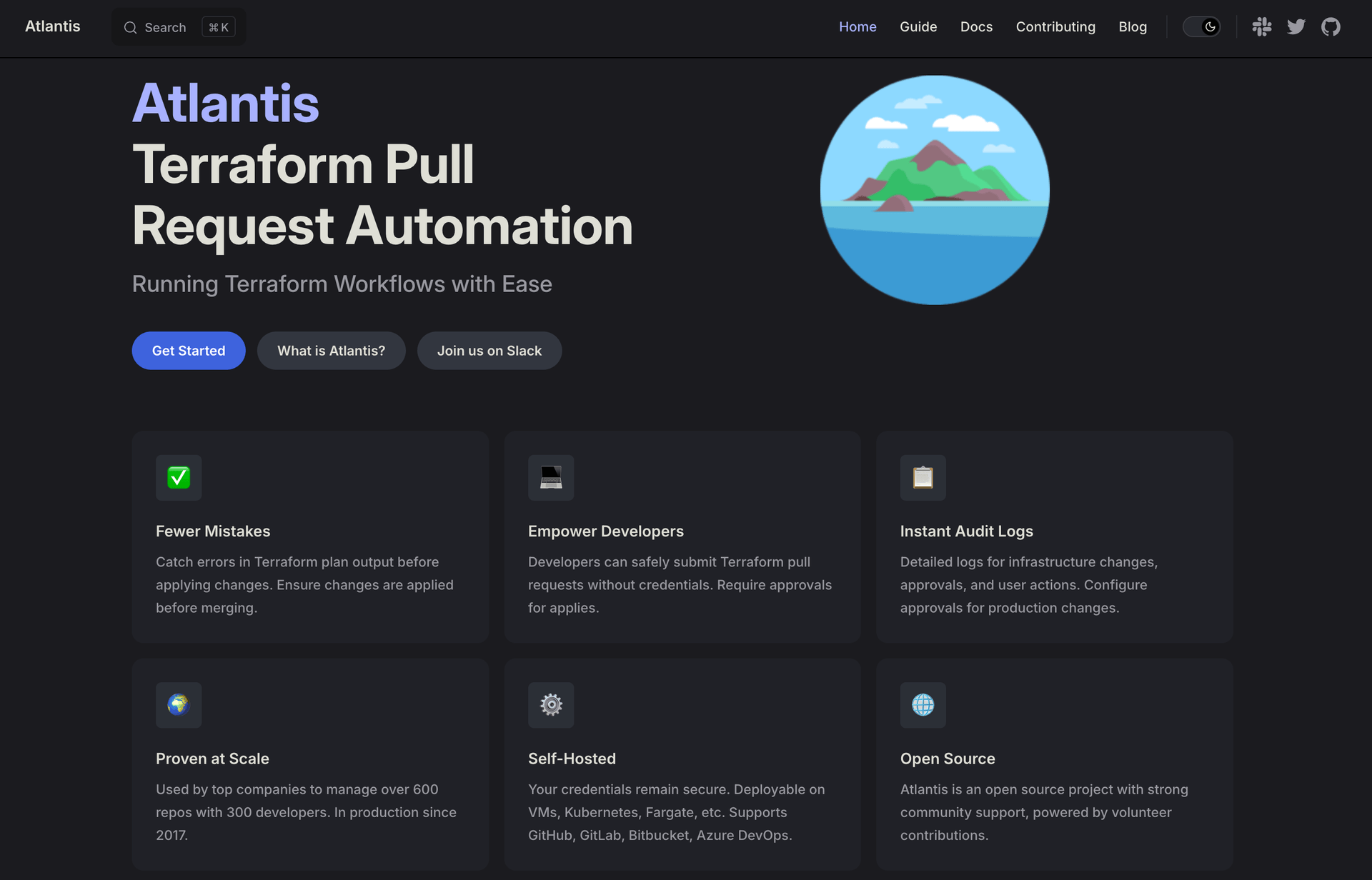 Atlantis takes a unique approach by integrating Terraform workflows directly into pull request processes, with a lightweight server that automates Terraform plan and apply operations based on Git events.